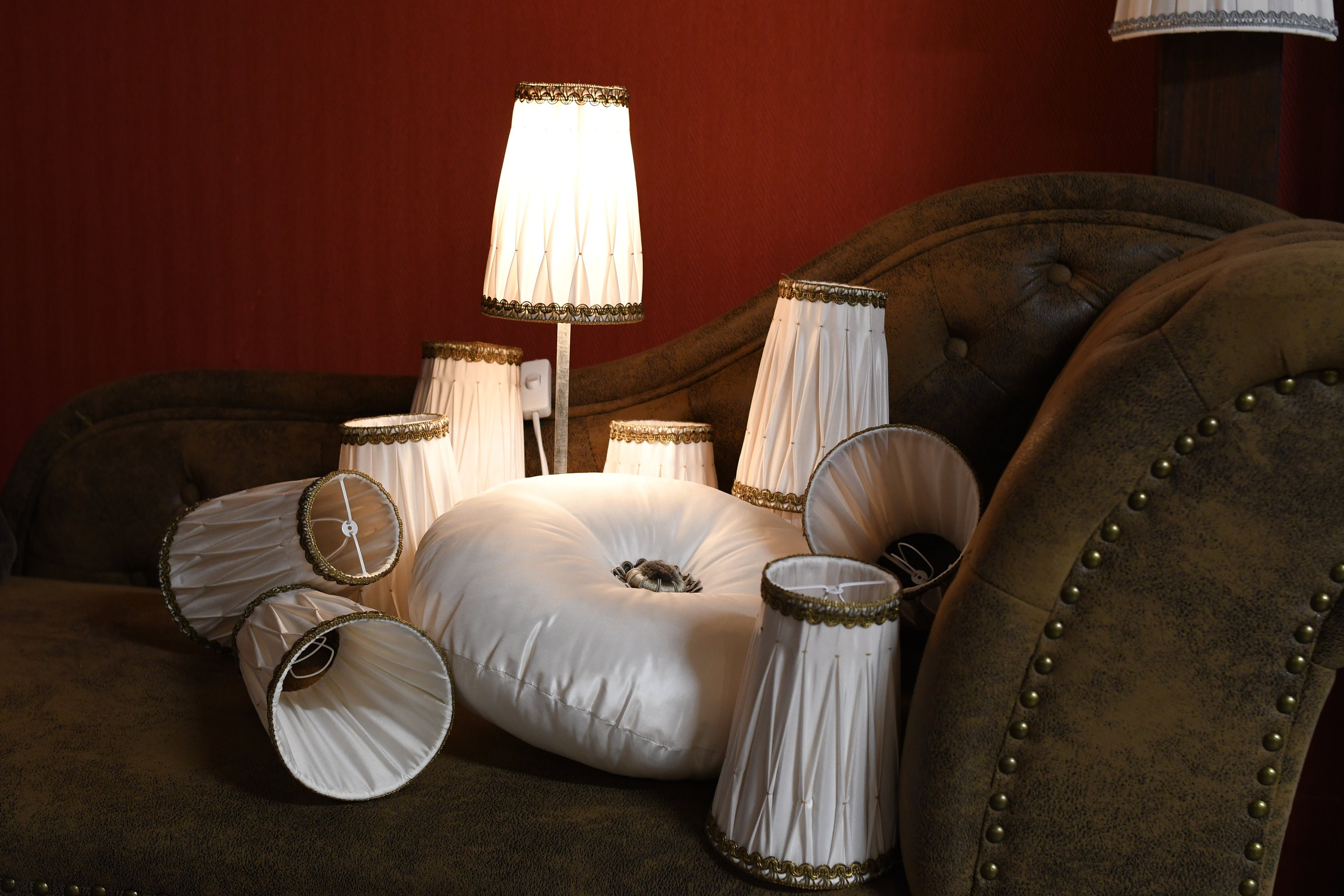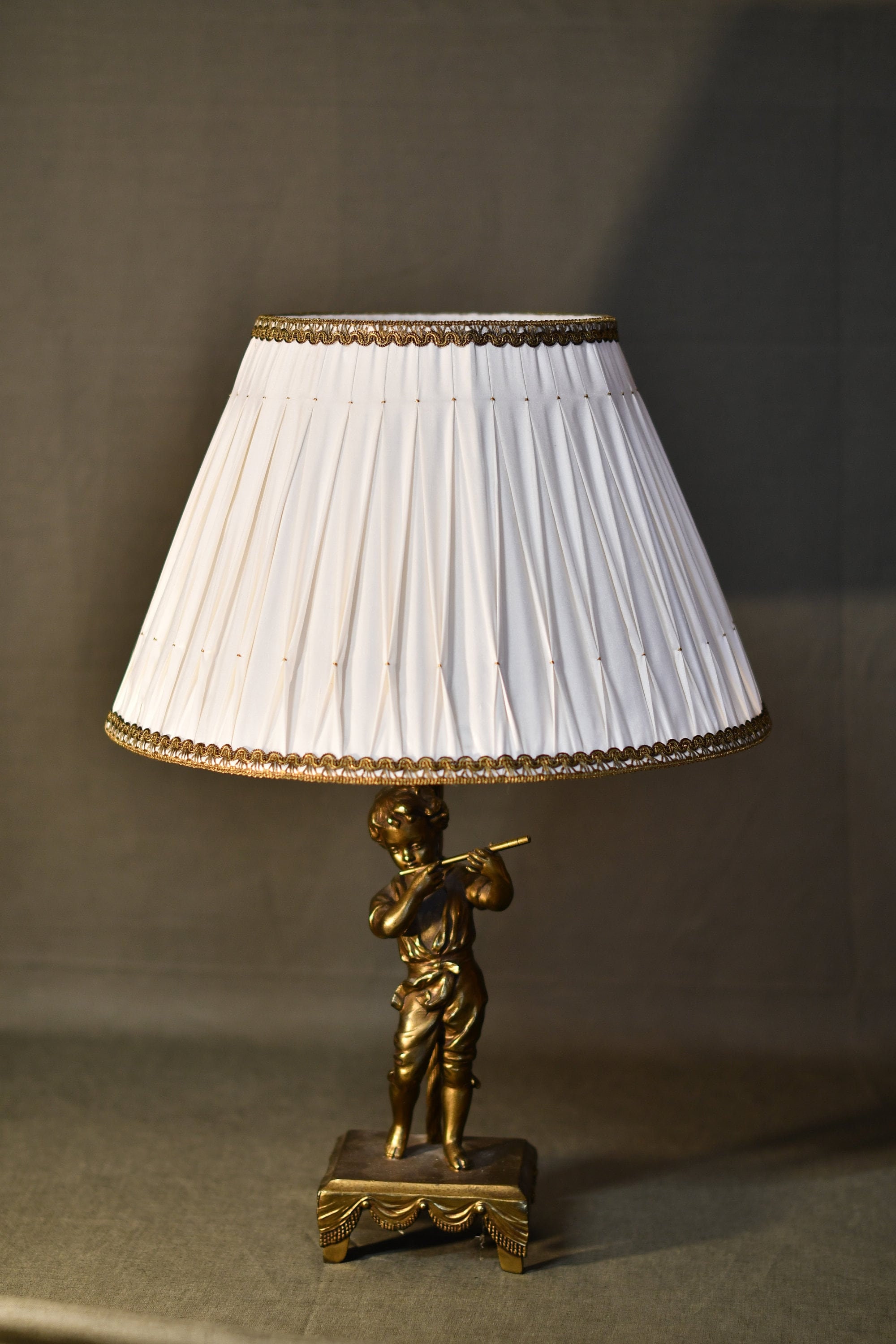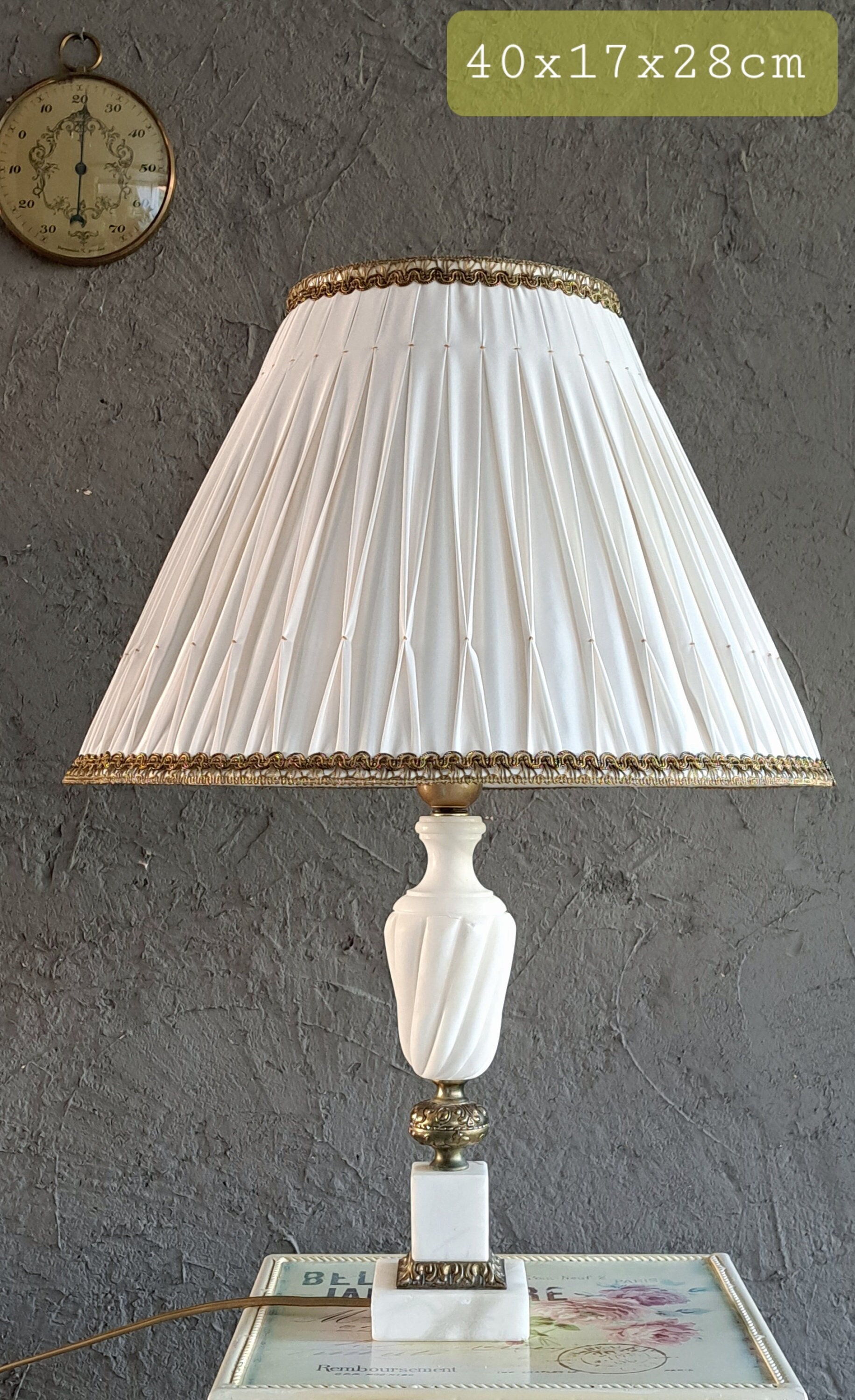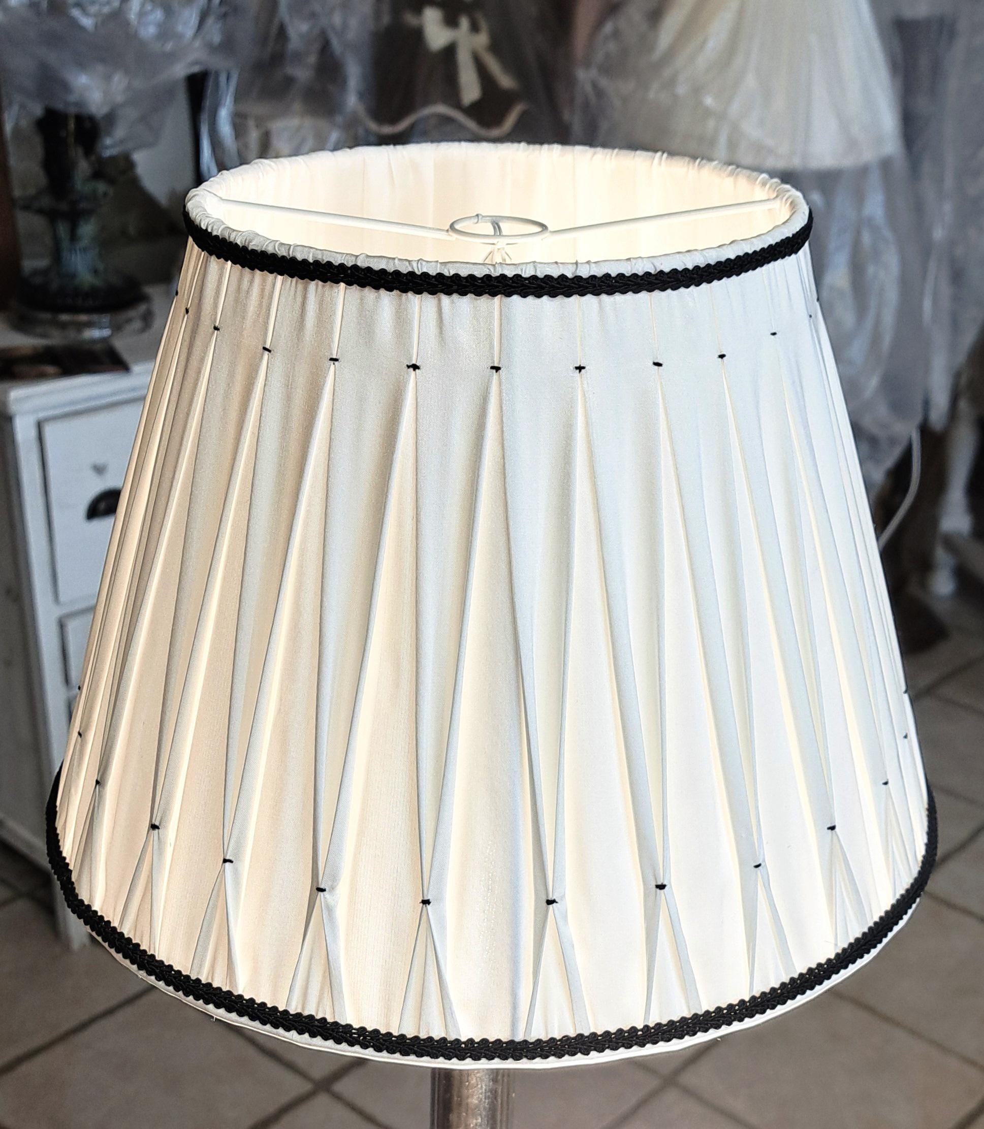 White & Gold Smocked Silk Lampshade – Vintage French Elegance | Handmade in France